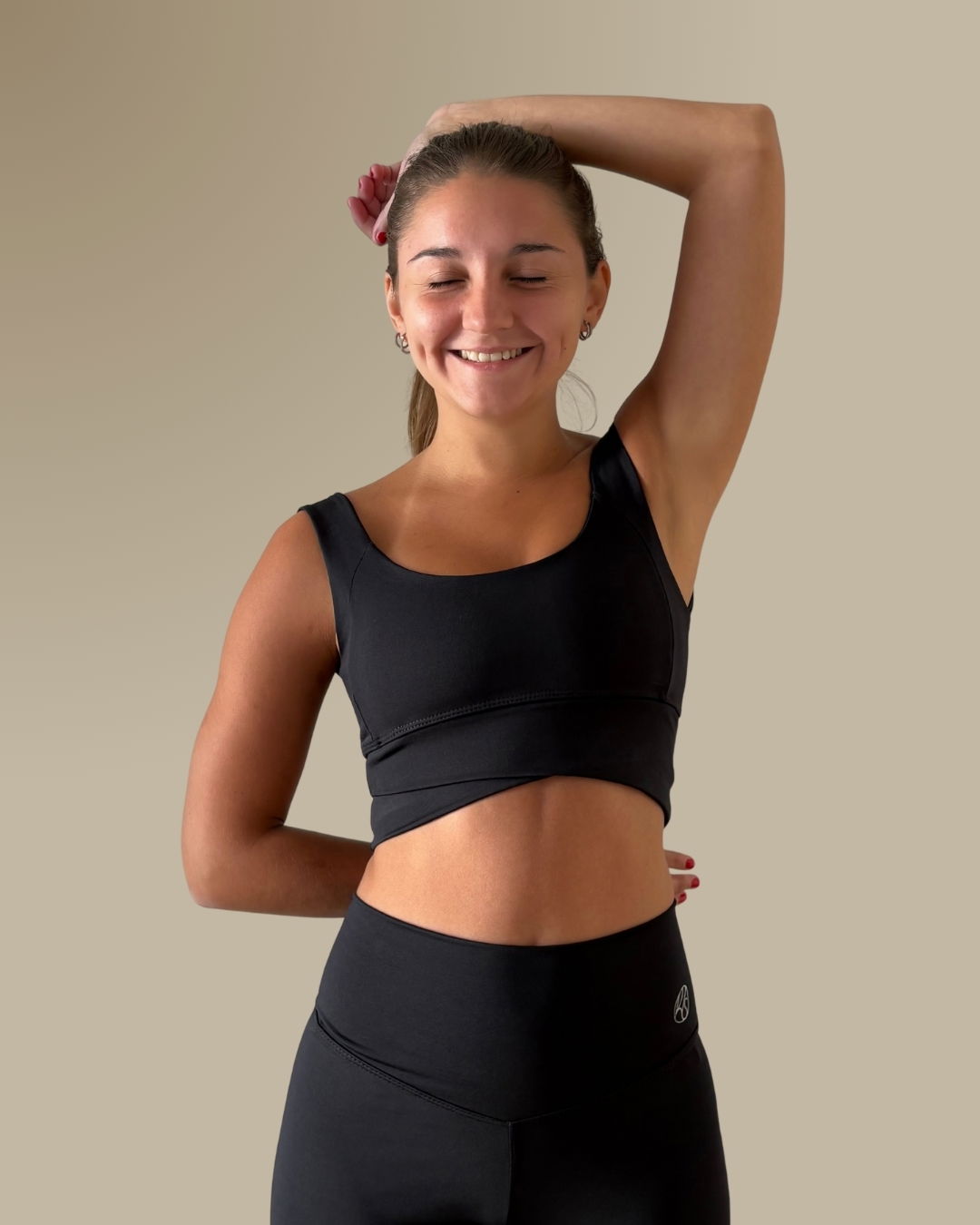 Top de microfibra pesada, doble rebote y opaca, con compresión que sostiene sin limitar.